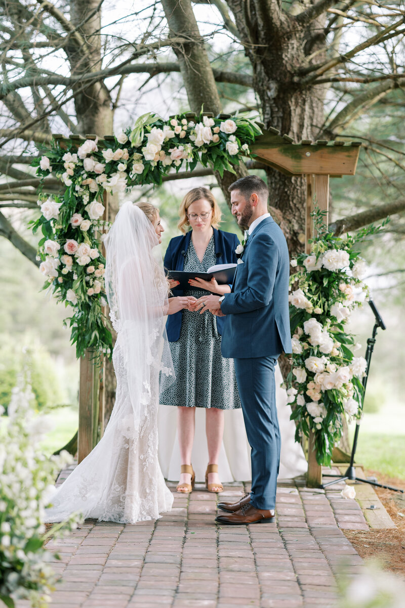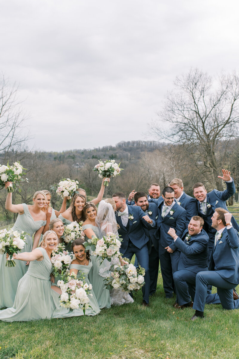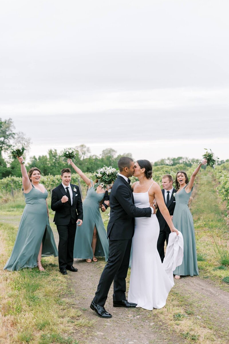 When there is no first look, the majority of the pictures have to be taken after the ceremony. Family pictures are generally done as soon as the ceremony ends because it’s the easiest time to round everyone up. Next up is full bridal party, and then bride and groom portraits. This generally runs into cocktail hour.